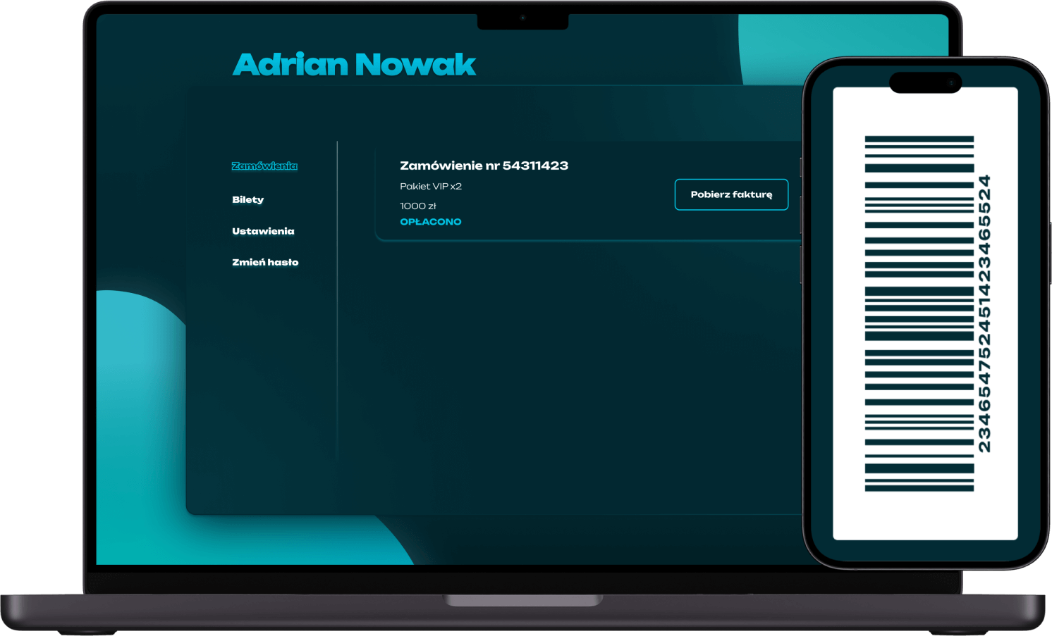 Na swoim profilu Użytkownik ma dostęp do swojego biletu oraz elektronicznego identyfikatora. Dodatkowo, kod QR ułatwia uczestnikom nawiązywanie kontaktów z innymi, a organizatorom monitorowanie frekwencji i aktywności uczestników podczas wydarzenia.