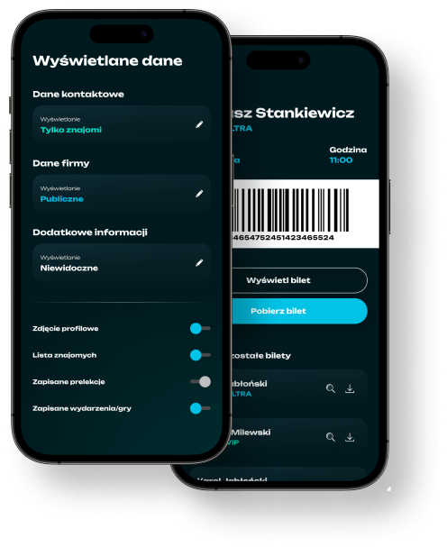 Na swoim profilu Użytkownik ma dostęp do swojego biletu oraz elektronicznego identyfikatora. Dodatkowo, kod QR ułatwia uczestnikom nawiązywanie kontaktów z innymi, a organizatorom monitorowanie frekwencji i aktywności uczestników podczas wydarzenia.